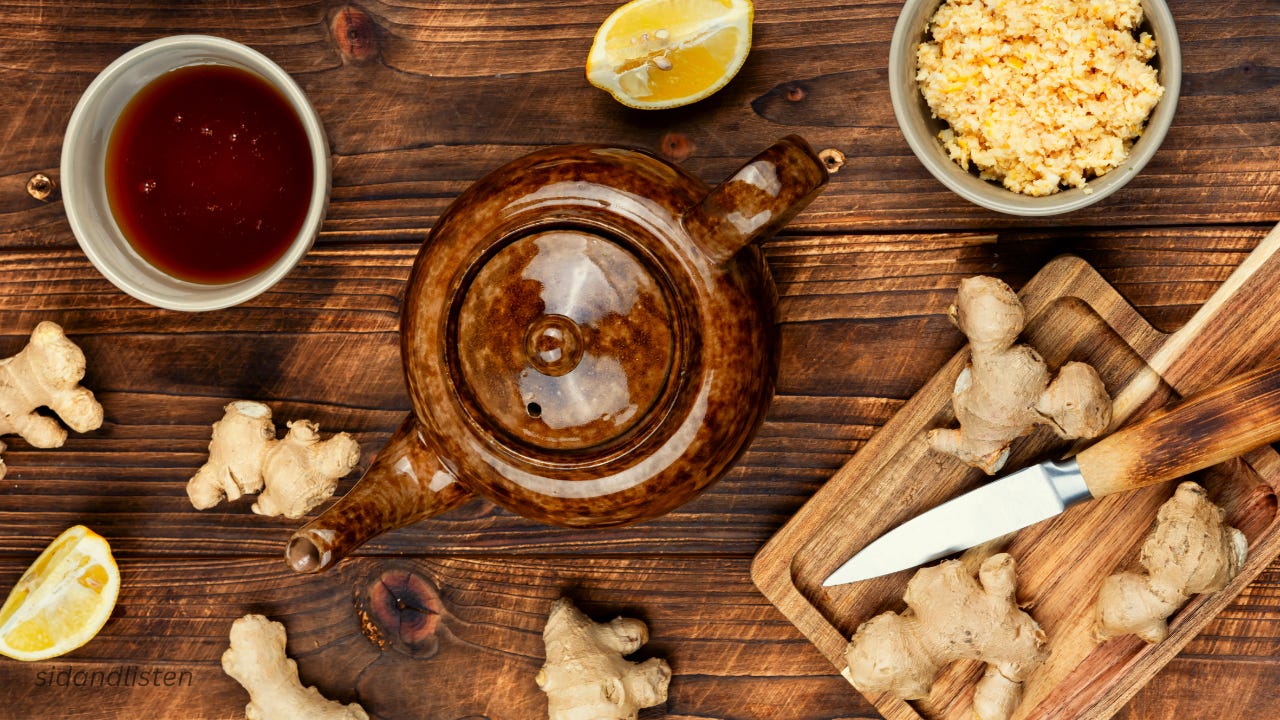 So the goal here is simple: calm things down and let that pressure move along naturally. And to do that, we’re going to make a simple fennel and ginger tea.
